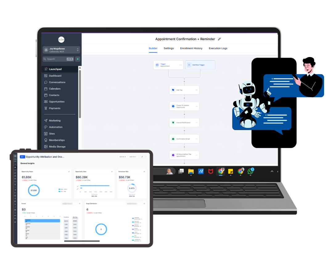Done-for-you automation for service-based businesses. Funnels, website, discovery calls, contracts, payments, reminders, and onboarding all connected so you never miss leads and save time.